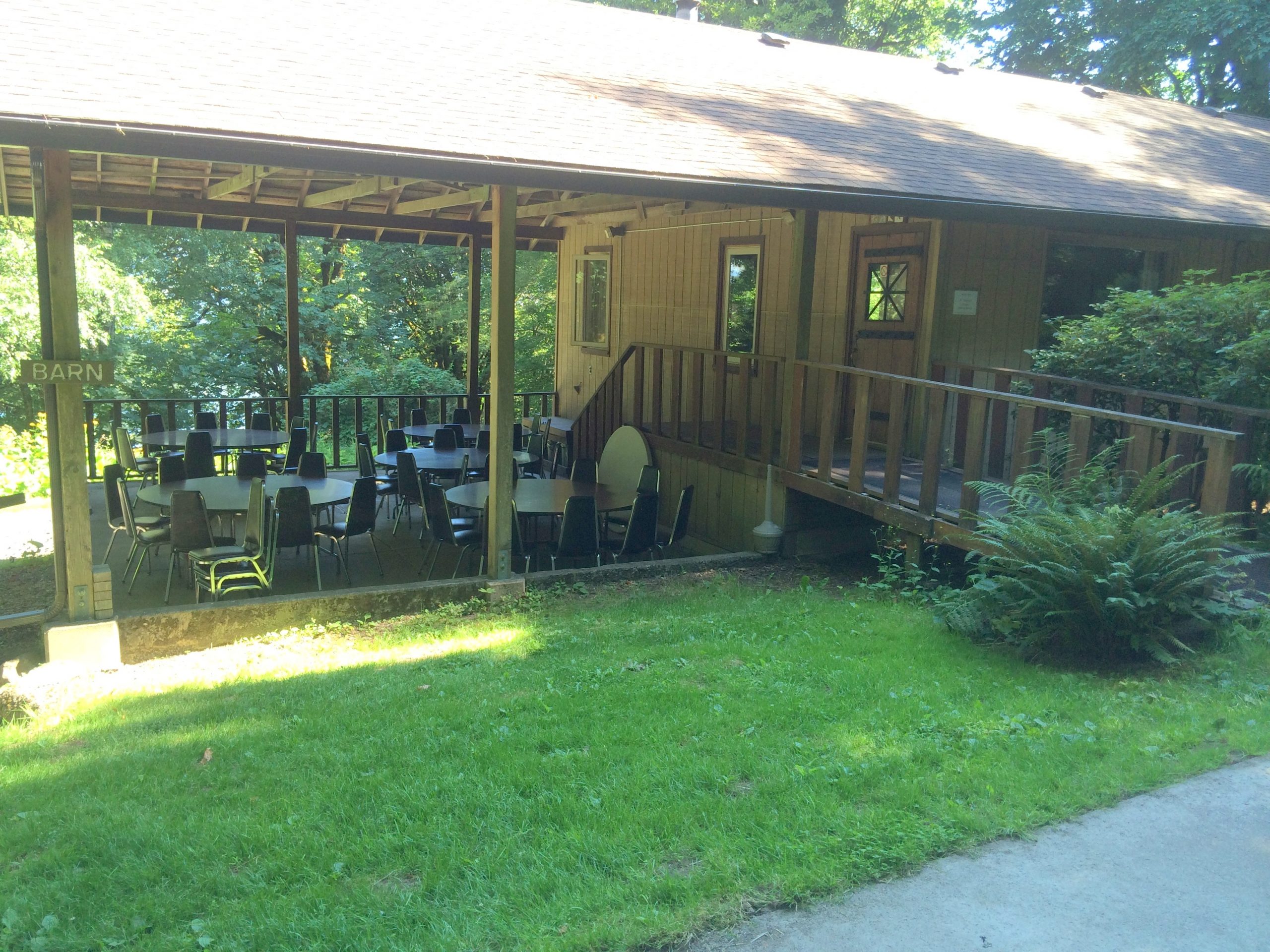 The Barn is a fully carpeted, “non-rustic” facility, set apart from other guest facilities. It sleeps 32 in four sleeping rooms of bunk beds divided between two wings, each containing a bathroom with toilet, showers and washbowls. The Barn’s meeting room seats up to 32 people. It has a food preparation area designated so that persons preparing food may remain participating members of the group. The Barn is the only facility at Menucha intended to let a guest group do its own food preparation. There is a wood stove in the meeting area (fire visible if desired), and there is a small outdoor covered area with a ping pong table. Booking priority is given to youth groups, although adults are also welcome.