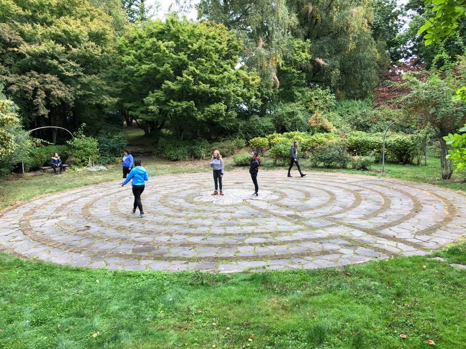 Located north of Wright Hall, near the pool and picnic area. The Menucha labyrinth design is unique because it is combination of ancient and modern labyrinth designs. It was constructed over 2 years time by volunteers, completed in 2008.