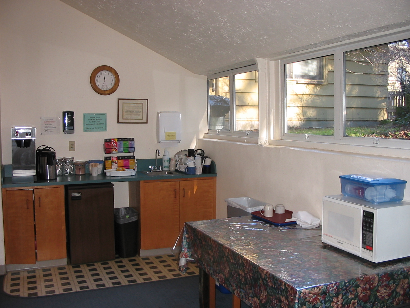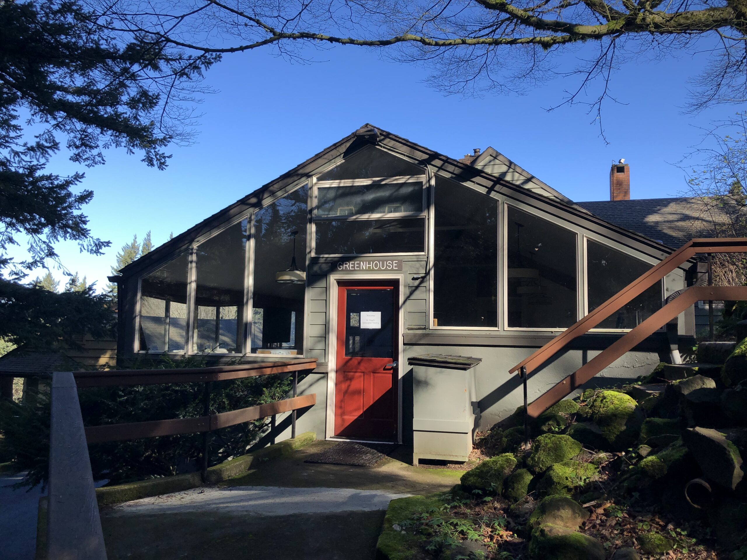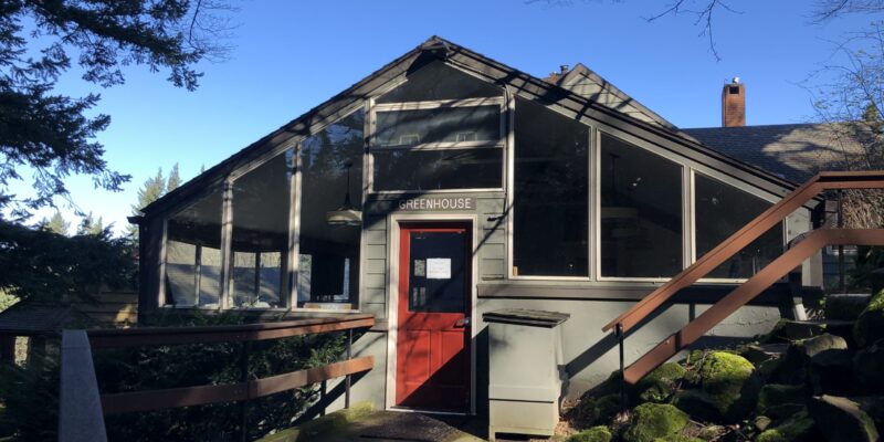The Greenhouse can seat 32; it has a piano, a coffee/tea area with small refrigerator, and a wheelchair-accessible bathroom. It is often used in conjunction with Boyd and/or Habitat, or as additional meeting space for groups in other buildings. An open wood burning stove adds to its charm.