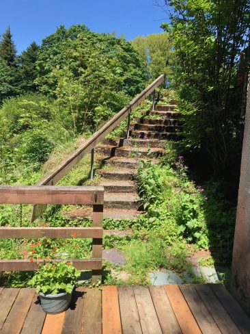 Accessibility alert: We regret that the Hideaway is not wheelchair accessible. To reach the Hideaway’s entrance, guests must walk down a long flight of outdoor stone steps. Guests with mobility issues are advised to choose other Menucha accommodations.